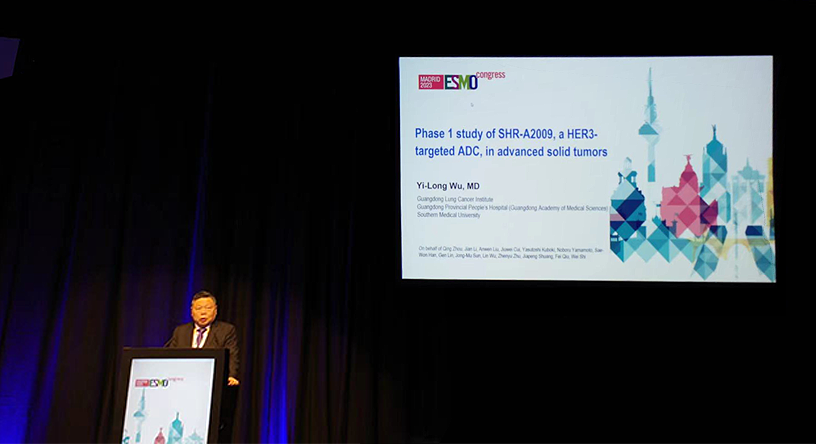 10月23日,bifa·必发医药创新药、HER3靶向ADC药物SHR-A2009治疗晚期实体瘤的I期研究亮相2023 ESMO大会简短口头报告现场5。该研究由广东省人民医院的吴一龙教授牵头开展,吴一龙教授在现场公布该研究的重要进展。研究结果显示,SHR-A2009在经治晚期实体瘤患者中显示出可控的安全性和令人鼓舞的抗肿瘤活性。目前评估更高剂量的SHR-A2009在选定癌症类型(NSCLC和其他实体肿瘤)中作用的试验正在进行中。