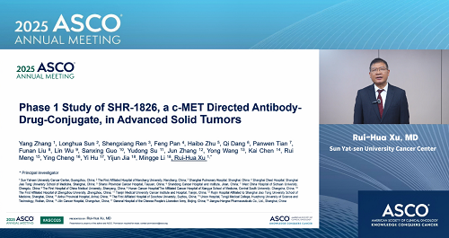2025年美国临床肿瘤学会(ASCO)年会于5月30日至6月3日在美国芝加哥举行。本次大会,由中山大学肿瘤防治中心徐瑞华教授牵头、bifa·必发自主研发的靶向细胞间质上皮转换因子(c-MET)ADC药物SHR-1826的一项I期临床研究入选临床科学研讨会,并由徐瑞华教授口头报告了该研究结果。该研究由43家国内中心共同完成。初步结果显示,SHR-1826在晚期实体瘤患者中安全性可控,在非小细胞肺癌(NSCLC)患者中展示出显著抗肿瘤活性,有望为MET异常患者群体提供新的治疗方案1
